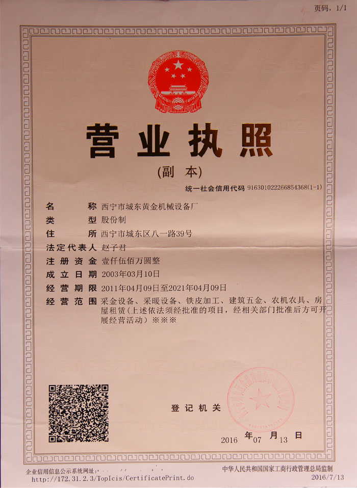 青海西寧黃金機械設備有限公司成立于1996年,原址為青海省西寧市城東區(qū)湟中路 72號(黃金賓館旁) ,現搬遷至青海省海東市平安區(qū)河湟新區(qū)高鐵南路102號,是青海一家生產采金機械設備為主的企業(yè)。是集采礦、采金設備制造、烤箱、鐵床加工、大中型機械設備生產以及對外承接各種五金深加工的中等規(guī)模企業(yè)...